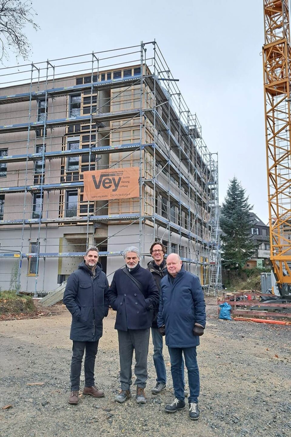 Anfang Januar 2026 lud der Bauherr, die Evangelische Kirchengemeinde Köln Niehl-Rhiel, zum Deckfest im Petrigarten ein. Gemeinsam mit Presbyter*innen, Vertreter*innen der Gemeinde und beteiligten Planer*innen feierten wir den bisherigen Baufortschritt und die engagierte Zusammenarbeit. Auch die Zeitkapsel der ehemaligen Petrikirche wurde mit Spuren der Vergangenheit gefüllt und erhielt einen besonderen Platz im Neubau.
